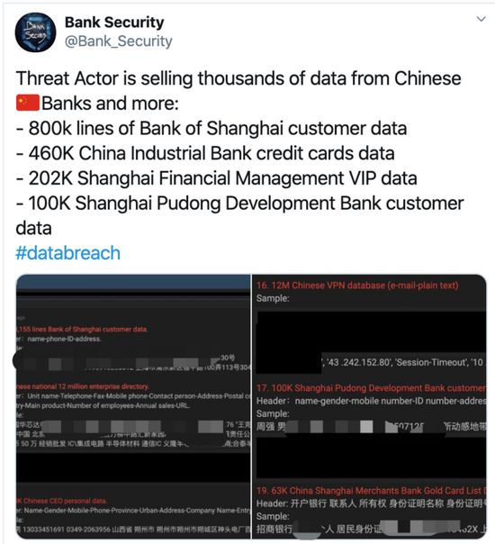 据上海证券报等多家媒体报道,近日有国外自媒体爆料称,暗网上有大量银行的个人客户数据正在被出售。