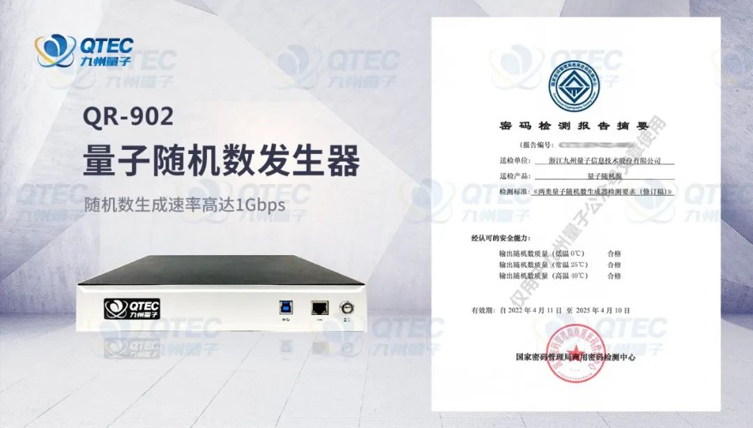 公司自研的新一代QR-902随机数发生器顺利通过商密检测。它采用安全、高速的后处理算法,具有极高的量子随机数生成速率,最高可达 1Gbps,实现了目前产品化QRNG的最高速率水平。此外,它同时支持 TCP/IP 与 USB 3.0两种数据接口,设备工作环境简单,可为政府机关、企业、互联网应用及云计算等业务场景提供安全加密应用服务。